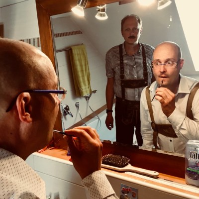 Männer, die auf Spiegel starren