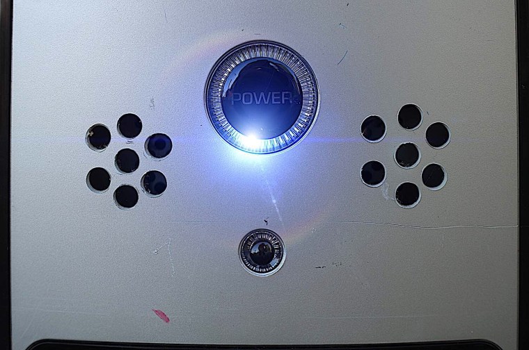 Einen halben Tag extra haben wir noch in die Umarbeitung der Melodie gesteckt. Wir wollten sie noch einfacher haben als in der Urfassung des Tracks, die wir schon vor Jahren auf einem alten PC produziert haben – das Foto oben zeigt den Anschaltknopf des greisen Geräts.